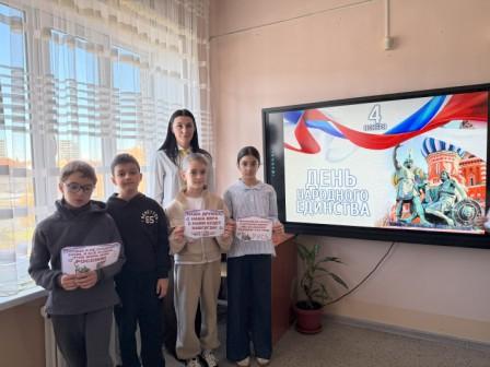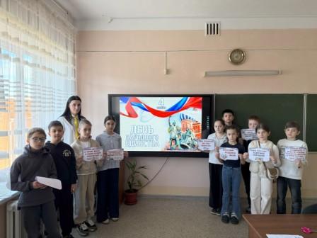 Празднование Дня народного единства в нашем лицее включило в себя ряд событий для учащихся всех возрастов. Торжества стартовали в пришкольном лагере, где для ребят провели мероприятие, ставшее настоящим праздником единения и дружбы. Обучающиеся на тематических занятиях познакомились с историей праздника и подвигами наших предков, что позволило вновь обратиться к нашим общим корням и историческому наследию. Проведённые встречи стали для школьников поводом задуматься о том, что единство народов — это не абстрактная идея, а фундамент для стабильного развития и успеха России. В ходе дискуссий ребята пришли к выводу, что способность быть вместе, преодолевая различия, является залогом достойного будущего для нашей страны.
