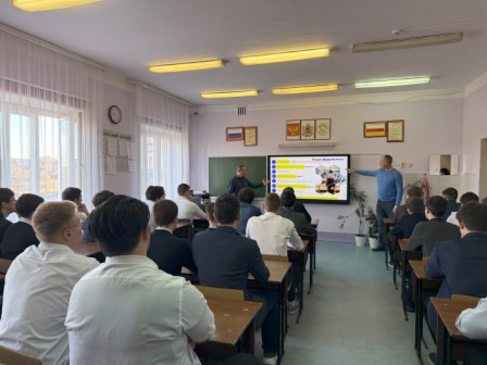 20 ноября 2025 года в нашем лицее состоялась профориентационная встреча старшеклассников с офицерами – подполковником Гореловым Максимом Александровичем и подполковником Годуновым Александром Егоровичем. Гости представили возможность поступления в Военный учебный центр (ВУЦ) при Ростовском государственном университете путей сообщения. Они подробно рассказали о преимуществах обучения, вступительных испытаниях и перспективах, которые открываются перед выпускниками ВУЦ. Беседа прошла живой и открытой атмосфере. Ребята активно задавали вопросы, интересуясь как учебным процессом, так и дальнейшим прохождением военной службы.