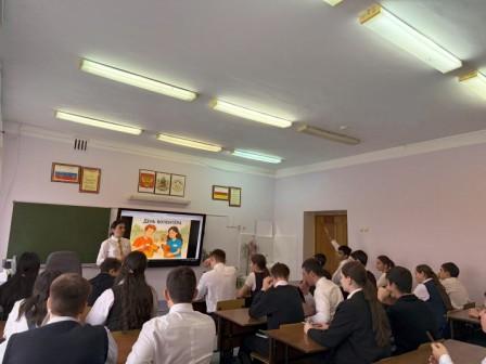 5 декабря, в День добровольца (волонтёра) России, в лицее прошел особенный урок. Он был посвящён тем, чьи сердца открыты для помощи, а руки — для добрых дел. Ребята узнали, что волонтёрское движение — это сила гражданского общества, основанная на безвозмездном участии людей в самых важных проектах. Волонтёры — это герои нашего времени: они помогают спасателям при стихийных бедствиях, ищут пропавших людей, поддерживают людей с ограниченными возможностями здоровья и создают атмосферу праздников на крупных спортивных и культурных событиях. Главный посыл, который усвоили наши ученики: волонтёром может стать каждый, независимо от возраста! Для этого важны не столько силы и возможности, сколько душевные качества: отзывчивость, ответственность, желание делать мир лучше. На занятии мы не только говорили о теории. Ребята подумали о том, какими качествами должен обладать настоящий волонтёр, поделились своим личным пониманием слова «добро», рассказали о добрых поступках, которые уже совершили в жизни, вдохновляя друг друга на новые свершения! Этот урок показал, что доброта и готовность прийти на помощь живут в сердце каждого. Давайте вместе продолжать творить добро и делать наш мир светлее!