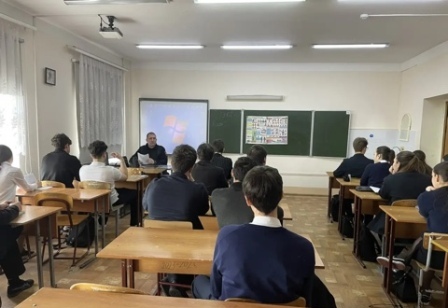 Перед лицеистами выступил заместитель начальника отдела полиции № 2 УМВД России по г. Владикавказ Республики Северная Осетия — Алания майор полиции Габараев Дмитрий Тамазович. В ходе встречи майор подробно рассказал о порядке приёма в ведомственные вузы, требованиях к кандидатам, социальных гарантиях и перспективах службы в органах внутренних дел. Учащиеся получили возможность задать интересующие вопросы и узнать о специфике будущей профессии из первых уст. Подобные встречи способствуют осознанному выбору будущей профессии и помогают лицеистам определиться с дальнейшим образовательным маршрутом.